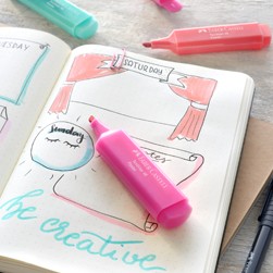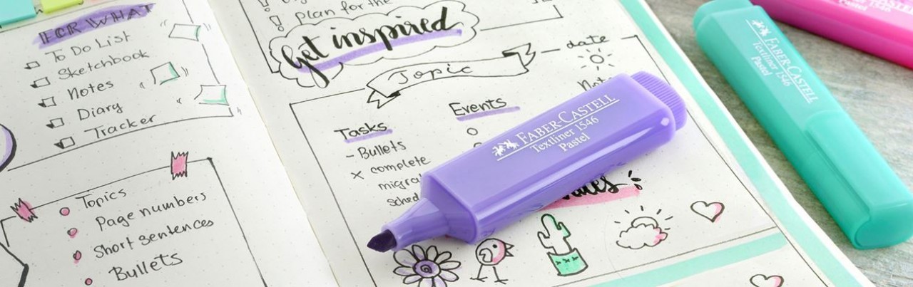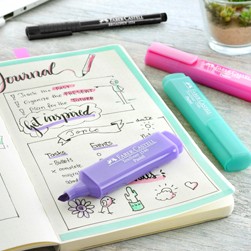 Faber-Castell có một công cụ thú vị và hữu ích để giúp bạn: Bút dạ quang Texliner 46 hiện có sẵn với sáu màu Pastel - Rose, Lilac, Turquoise, Light Green, Vanila. Phần cuối dài của nêm cung cấp ba độ rộng dòng khác nhau, làm cho nó trở thành điểm đánh dấu mềm để đánh dấu các ghi chú quan trọng của bạn.